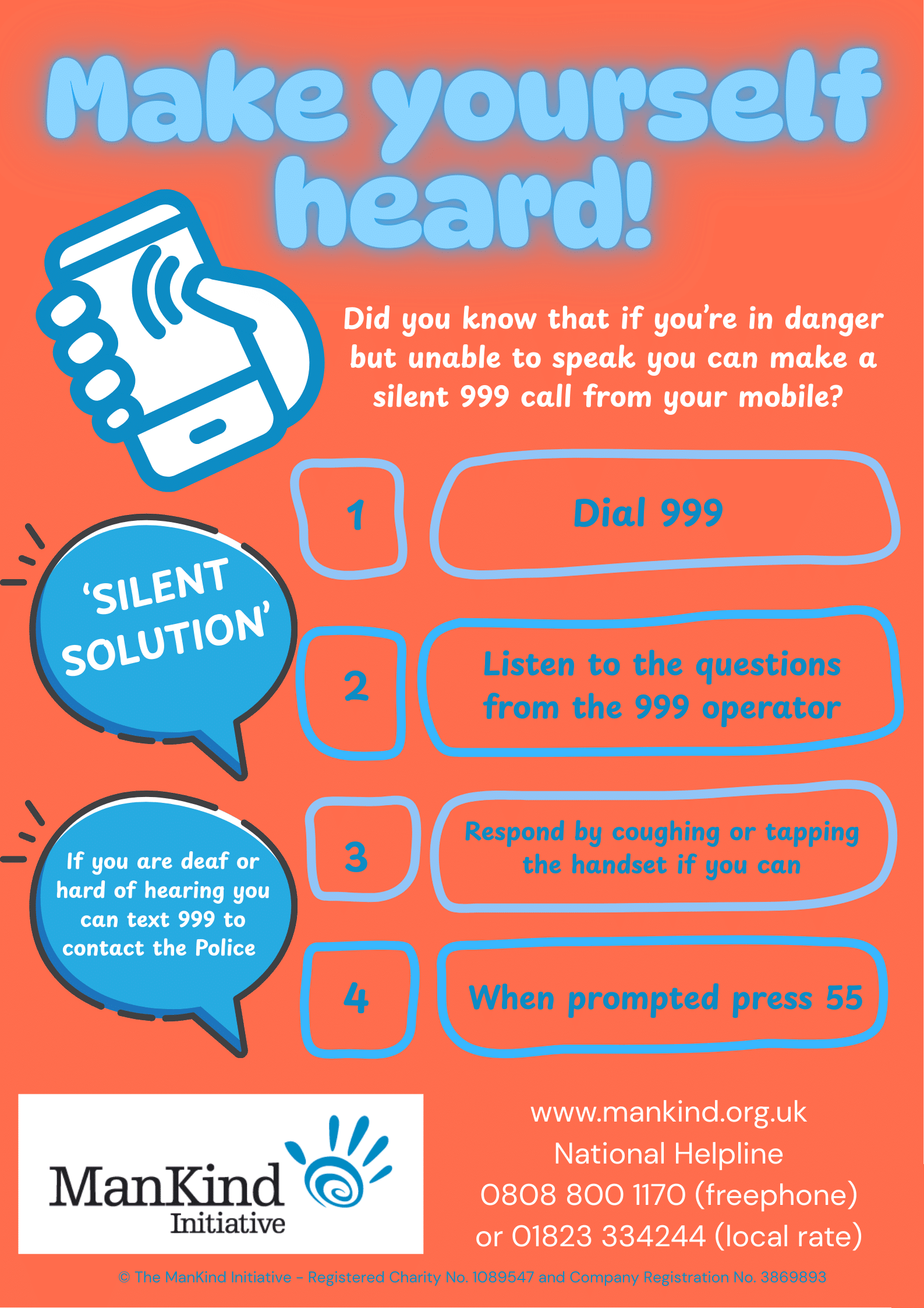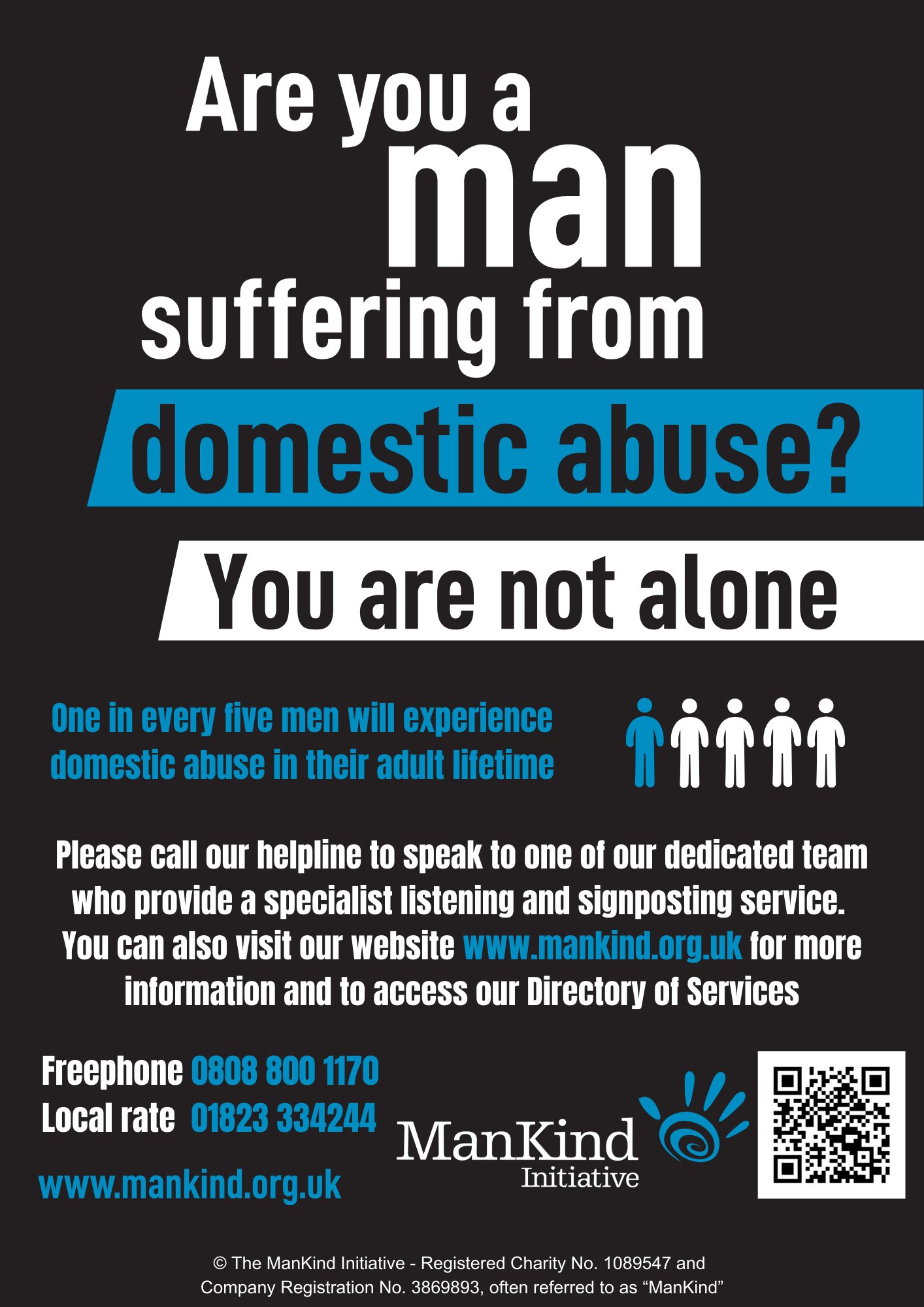 The ManKind Initiative has a wide range of leaflets and posters that can be used to help male victims.
